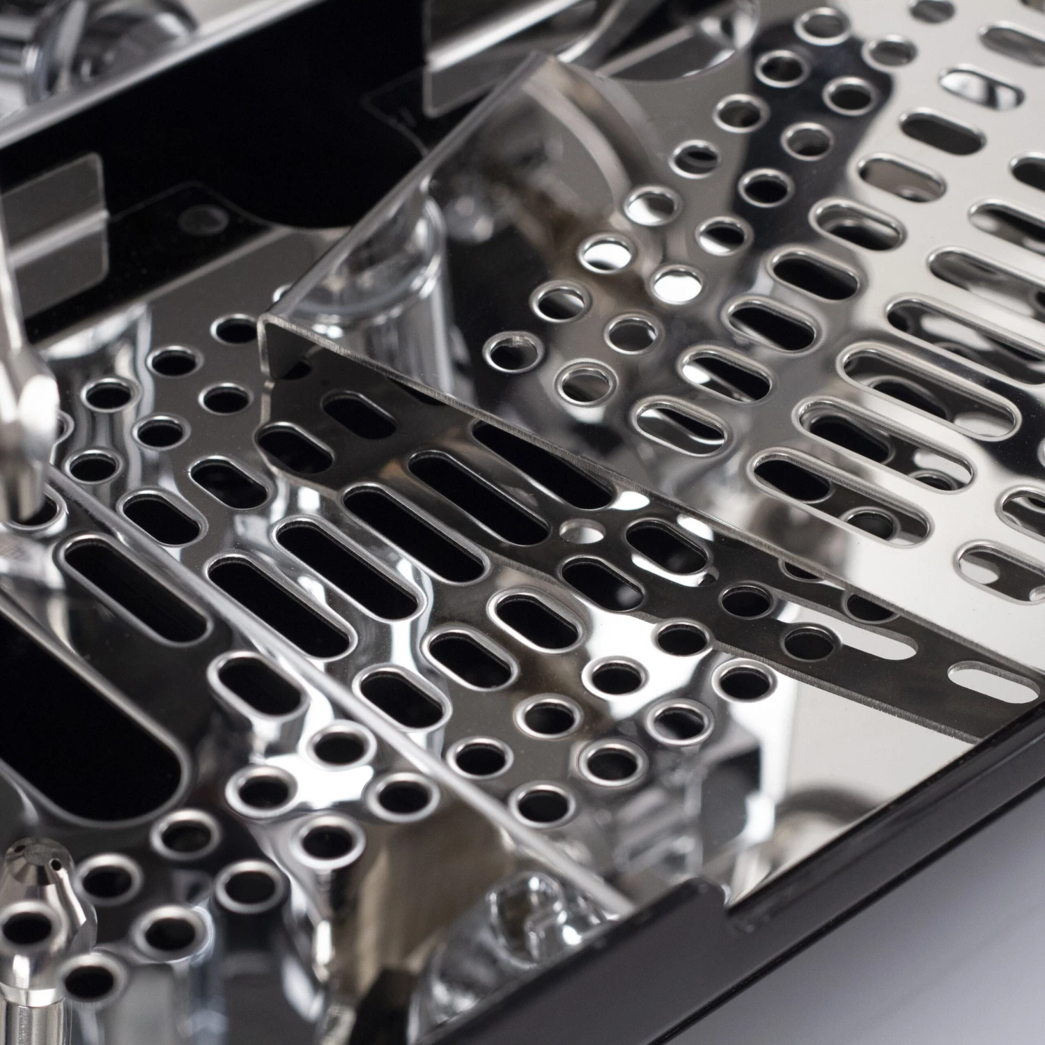 Crem and their machines can only be described as cutting edge, and the CREM ONE DUO-V is no exception. Dual boilers, dual PIDs, water reservoir as well as a water line hook up, a drain line hook up, and high quality parts deliver one of the strongest prosumer espresso machines available. Innovations like the shot mirror and automatic power on/off are incredible convenience features, as well, along with a massive drip tray for fewer trips to empty the tray compared to most other machines.