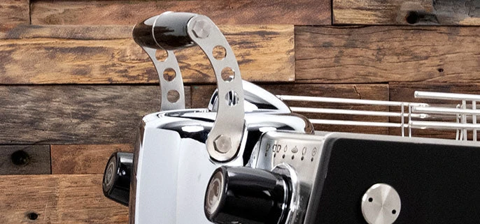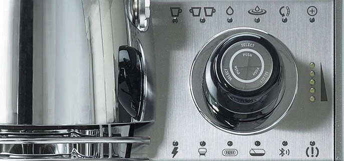The key to understanding what the Mina has to offer is at its heart: the DFR (Digital Flow Regulator) and a custom made Flow Meter. This is the first flow meter designed for an espresso machine and it is so accurate that it can measure up to 80 pulses per second. Now, when approaching the Mina, perhaps the first thing you’ll notice is the yoke above the brew group. The yoke works with the DFR and Flow Meter. You can use the yoke in both the manual and automatic mode and, when brewing coffee by using the control knob on the right, you will brew in the automatic mode only. This manual lever allows you to adjust flow rate in five stages during your extraction between 0 and 12 grams/second. Each stage of flow rate is represented by a series of lights on the right side of the machine as a visual aid. By adjusting flow rate, you’re granted a new level of control over your extraction, essentially creating a unique extraction profile. With the Mina, Dalla Corte’s mission was to offer control over your espresso’s balance, acidity, sweetness—even it’s aftertaste and texture. After testing it, we think Dalla Corte has achieved that mission in spades.