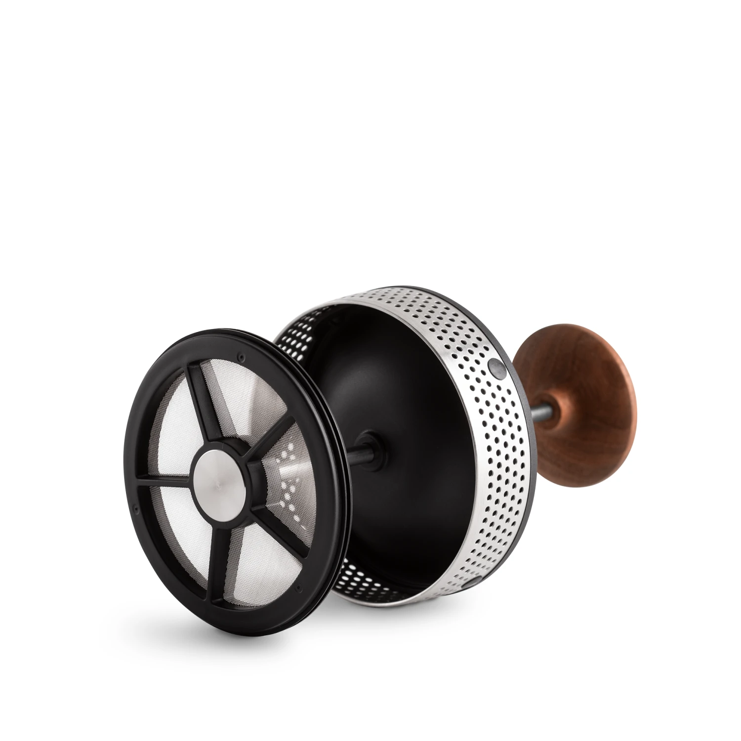 An oversized press in walnut fits nicely into your palm, and the attached filtration mesh works to keep the brewed coffee clean from used grounds. The 24oz unit has a double wall vacuum, a stainless steel body and filter, and non-stick interior that keeps the clean-up process simple.