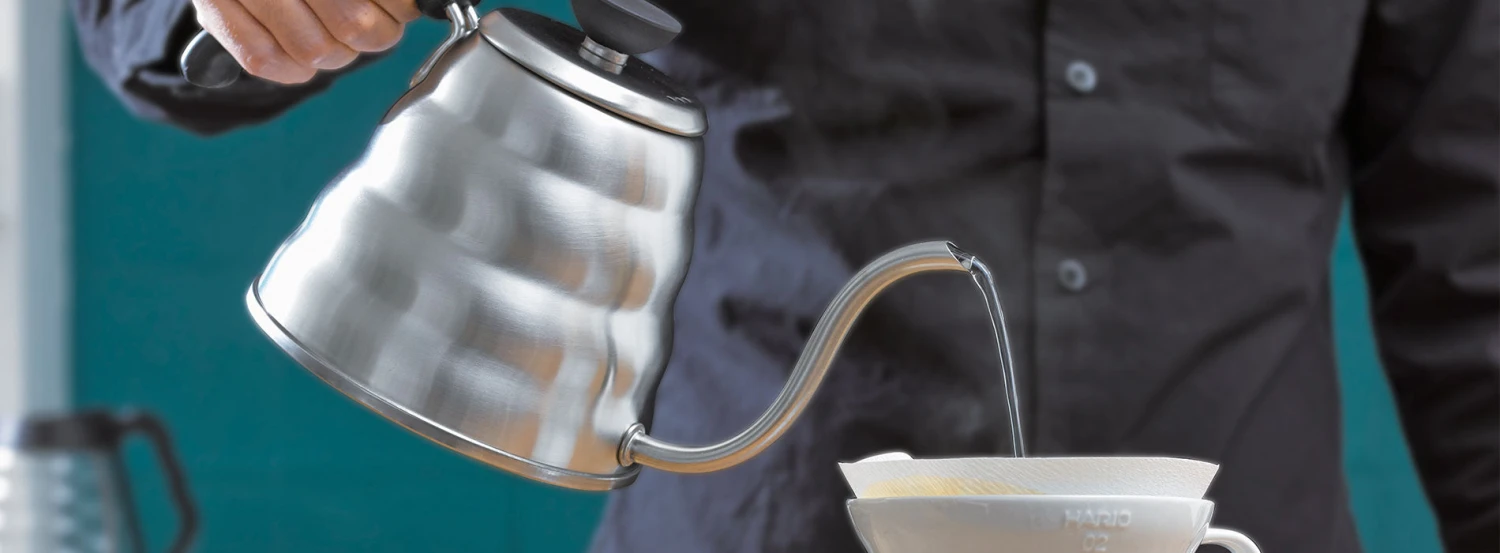 The Buono, made from long-lasting dishwasher safe stainless steel, does it with exceptional control and style. The beautiful swan neck produces a thin stream and the balanced kettle’s shape and properly angled handle give you exacting control of the pour. It allows you to produce the perfect pour-over coffee and is designed to complement your favorite Hario filtered Dripper.