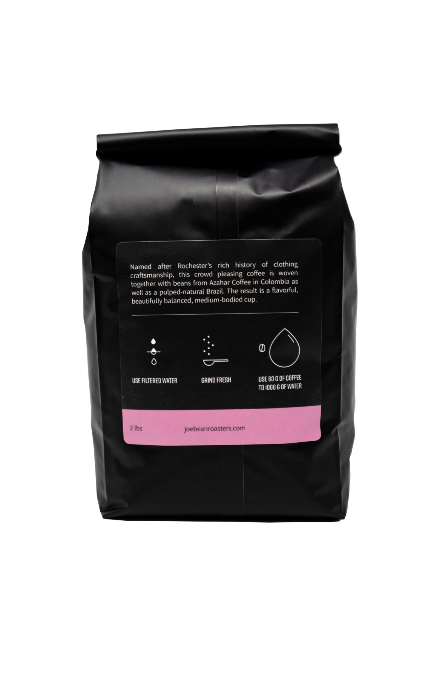 With crowd pleasing notes of caramelly-sweet chocolate and hazelnut, Fabricator is Joe Bean’s most approachable blend. Flexible enough to be brewed as both espresso or via filter (drip) methods, this coffee combines medium roast beans from Azahar Coffee from Colombia and pulped natural process beans from Brazil. Taking its name from Rochester’s own history of clothing manufacture.