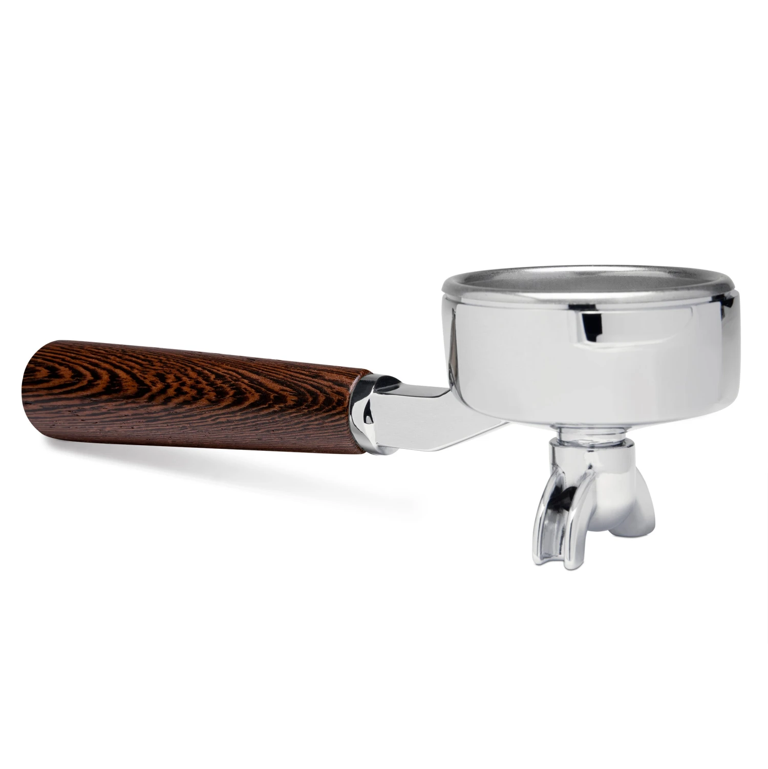 This double spout portafilter for the Gaggia Classic features an ethically sourced wenge wood handle that was crafted in the United States. The filter head is made from brilliantly polished chrome-plated brass and imported from Italy. Each portafilter is assembled by hand in our machine prep facility in Rochester, NY. As a natural product, no two wood pieces are exactly the same and the appearance of the handle you receive will vary slightly from what is shown on this page.