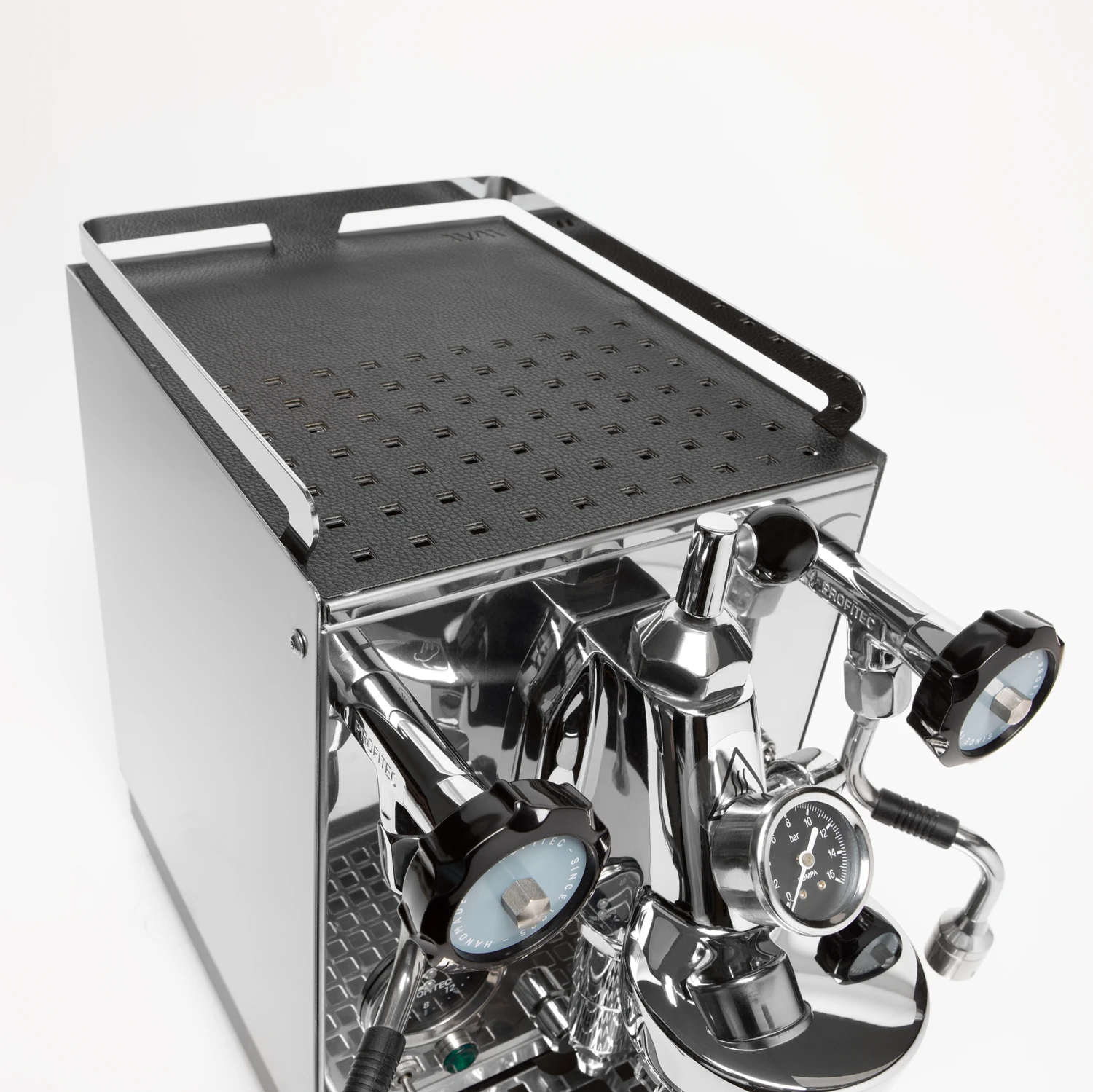 An innovative solution to protect your Profitec Pro 400 the Wiedemann EspressoCover® is a vegan leather cover that adheres to the cup tray to prevent the polished steel from being scratched by the rough bottoms of ceramic cups and other abrasive surfaces. The cover is both durable and heat resistant while maintaining a real leather-like feel and appearance that subtly blend with the aesthetics of the machine.