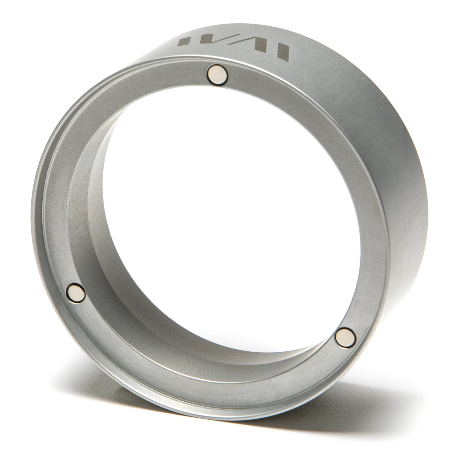 The Wiedemann Precision Dosing Funnel is the ideal preparation tool for home baristas looking for tidier and more efficient prep, especially when using WDT to optimize shots before extraction. On the underside of the ring, a set of three magnets* helps to hold the funnel steady, even whisking for WDT. The funnel also prevents coffee from spilling over the edges of your portafilter when grinding directly into it with a **compatible grinder.